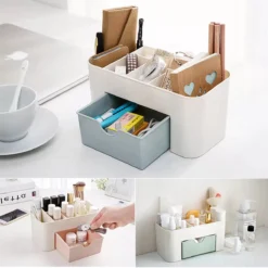 IBright Make-Up Organizer Met Lade – Cosmetica Opbergdoos – Bureau Organizer – Blauw