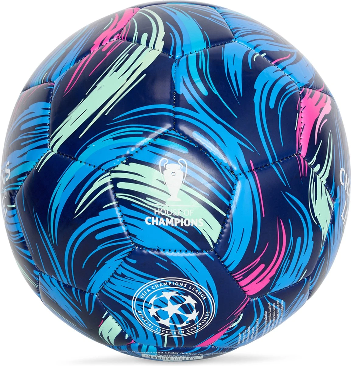 Elke keer dat de Champions League hymne klinkt is het weer kippenvel. Ook dit seizoen willen de Europese topclubs een gooi doen naar de cup met de grote oren. In het belangrijkste toernooi voor clubs in Europa zien we de grootste spelers aan de bal en met onze Champions League voetbal brush ben ook jij helemaal klaar voor de wedstrijden! Het Champions League logo schittert groot voorop de bal. De bal is in de kleur van de Champions League en voorzien van velle ‘verf’ strepen die de bal echt afmaken! Deze Champions League voetbal brush, maakt onderdeel uit van de officiële Champions League fancollectie. Deze brush CL voetbal is gemaakt van PVC. Wij adviseren om de voetbal enkel te gebruiken op een zachte ondergrond. Hierdoor behoudt de bal zijn kwaliteiten. Gebruik voor straatvoetbal is op eigen risico!
