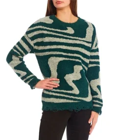 Crew Neck Pullover Swirl Print Sweater