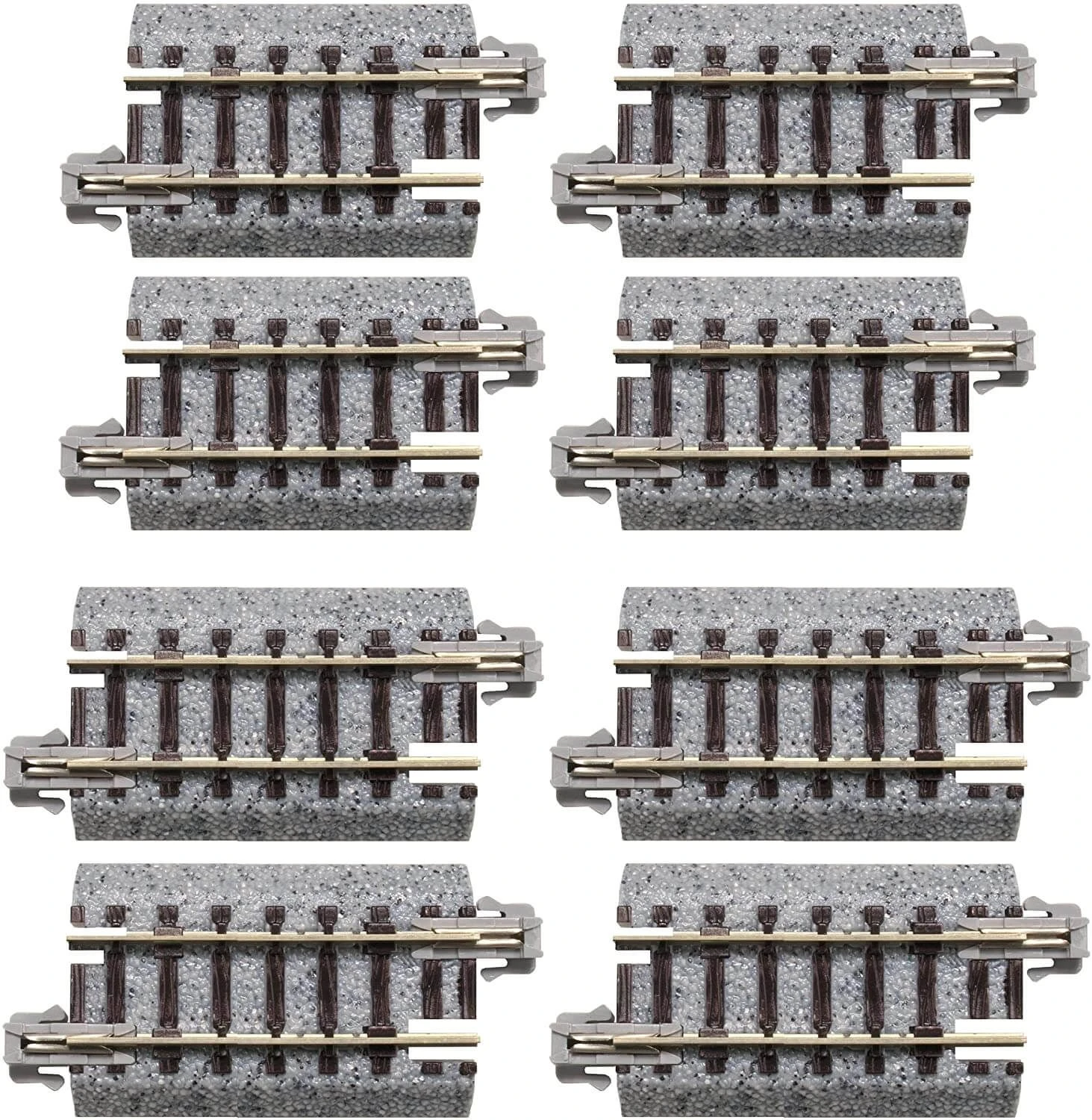 This modular track system features nickel-silver rails fully integrated to a remarkably realistic-looking roadbed. The patented Unijoiners (included) lock the track sections together firmly and evenly. The frustration of derailments resulting from uneven rail joints and separating sections is eliminated. There’s no need to glue down cork roadbed; tack down track sections and file rail connections smooth after soldering. Simply snap it together and you’re ready to go.