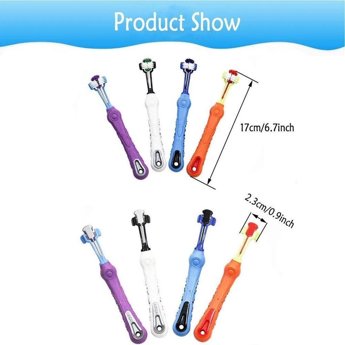 Merkloos Tandenborstel – Voor Huisdieren – Honden – 3 Zijdig – Multi-Hoek – Schoonmaken – Tanden – Slechte Adem – Tandsteen – Tandenborstel – Gezondheid – Blauw