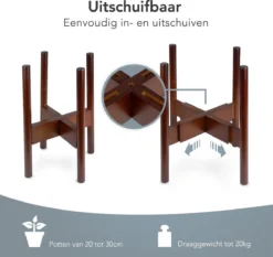 LifeGoods Planten Standaard – Uitschuifbare Bloempothouder – 20 Tot 30 Cm – Donker Bamboe